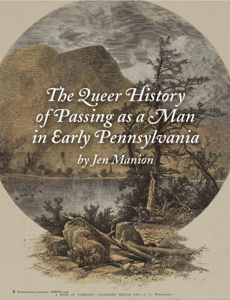 - “The Queer History of Passing as a Man in Early Pennsylvania,” PA Legacies 2016 ↩︎